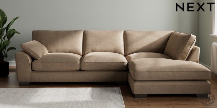 7.3.1 Buy Stamford Grand Relaxed Sit Large Corner Chaise - Right Hand Luxe Chenille Mid Camel Beige Large Square Angle - Gunmetal from the Next UK online shop Click here to use our accessible website