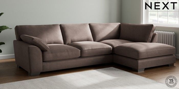 7.3.1 Buy Stamford Grand Relaxed Sit Large Corner Chaise - Right Hand Luxe Chenille Mink Brown Large Square Angle - Gunmetal from the Next UK online shop Click here to use our accessible website