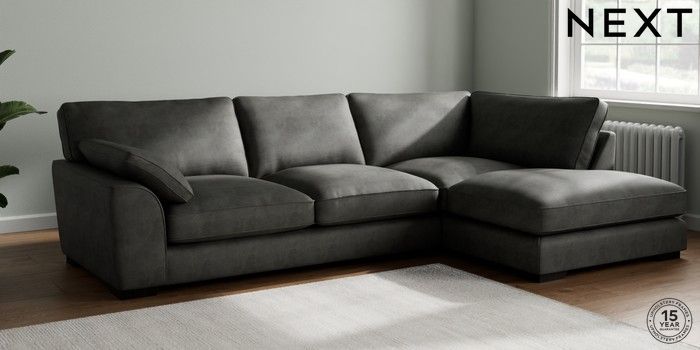 7.3.1 Buy Stamford Grand Relaxed Sit Large Corner Chaise - Right Hand Monza Faux Leather Easy Clean Dark Grey Large Square Angle - Dark from the Next UK online shop Click here to use our accessible website