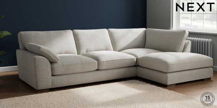 7.2.6 Buy Stamford Grand Relaxed Sit Large Corner Chaise - Right Hand Multi Weave Light Blue Large Square Angle - Mid from the Next UK online shop Click here to use our accessible website