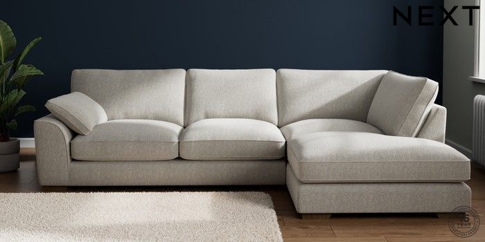 7.3.1 Buy Stamford Grand Relaxed Sit Large Corner Chaise - Right Hand Multi Weave Light Blue Large Square Angle - Mid from the Next UK online shop