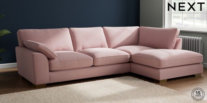7.3.1 Buy Stamford Grand Relaxed Sit Large Corner Chaise - Right Hand Natural Mix Light Rose Pink Large Square Angle - Brushed Brass from the Next UK online shop Click here to use our accessible website