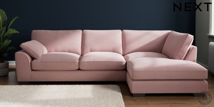 7.3.1 Buy Stamford Grand Relaxed Sit Large Corner Chaise - Right Hand Natural Mix Light Rose Pink Large Square Angle - Gunmetal from the Next UK online shop Click here to use our accessible website