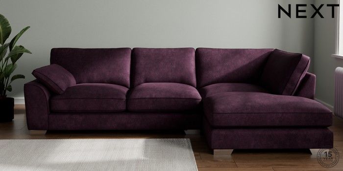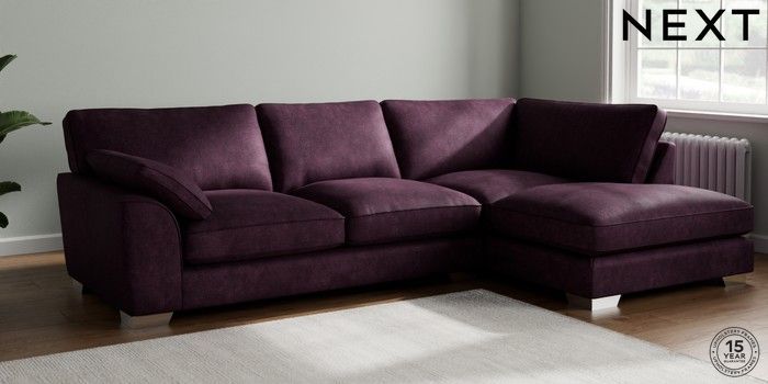7.3.1 Buy Stamford Grand Relaxed Sit Large Corner Chaise - Right Hand Plush Chenille Dark Plum Purple Large Square Angle - Chrome Metal from the Next UK online shop Click here to use our accessible website