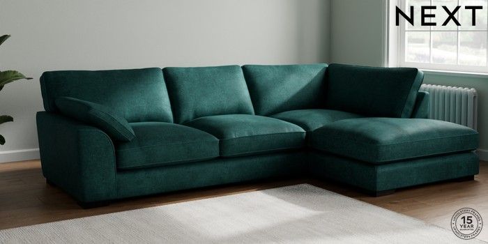 7.3.1 Buy Stamford Grand Relaxed Sit Large Corner Chaise - Right Hand Plush Chenille Dark Teal Green Large Square Angle - Dark from the Next UK online shop Click here to use our accessible website