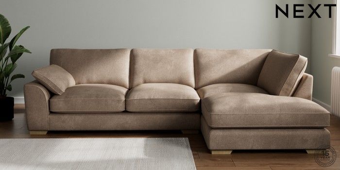 7.3.1 Buy Stamford Grand Relaxed Sit Large Corner Chaise - Right Hand Plush Chenille Mid Natural Large Square Angle - Light from the Next UK online shop Click here to use our accessible website