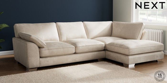 7.2.10 Buy Stamford Grand Relaxed Sit Large Corner Chaise - Right Hand Plush Chenille Oyster Large Square Angle - Chrome Metal from the Next UK online shop Click here to use our accessible website