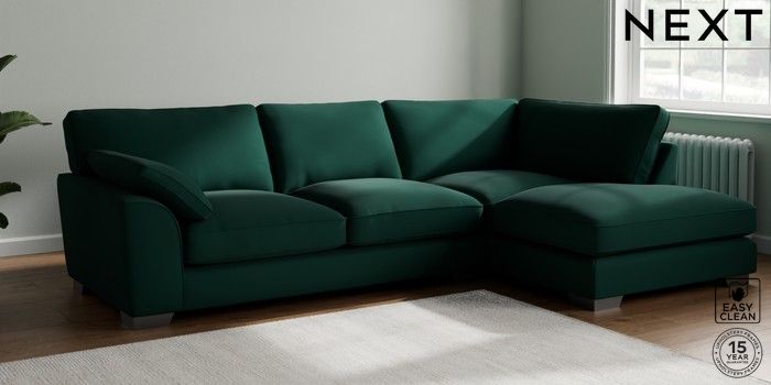 7.3.1 Buy Stamford Grand Relaxed Sit Large Corner Chaise - Right Hand Plush Velvet Easy Clean Bottle Green Large Square Angle - Gunmetal from the Next UK online shop