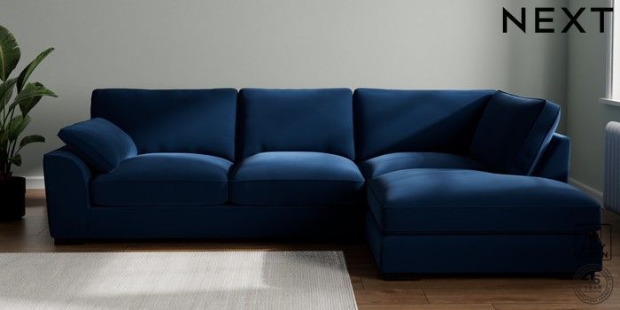 7.3.1 Buy Stamford Grand Relaxed Sit Large Corner Chaise - Right Hand Plush Velvet Easy Clean Navy Blue Large Square Angle - Dark from the Next UK online shop Click here to use our accessible website