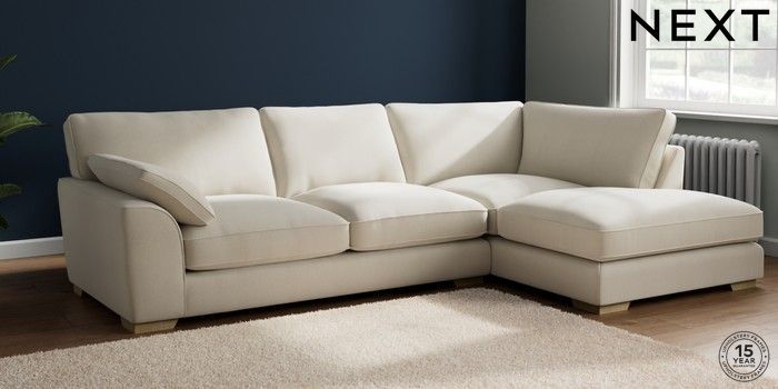7.3.1 Buy Stamford Grand Relaxed Sit Large Corner Chaise - Right Hand Relaxed Linen Look Oyster Large Square Angle - Light from the Next UK online shop Click here to use our accessible website