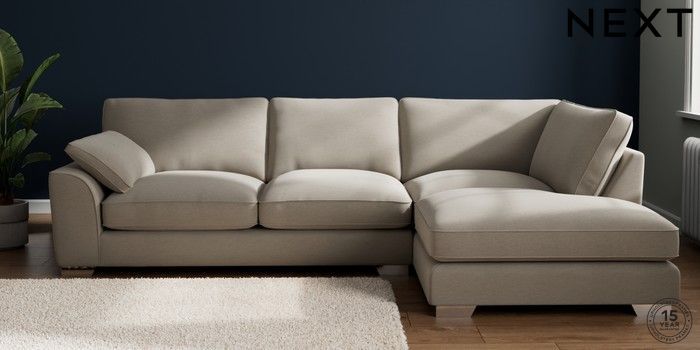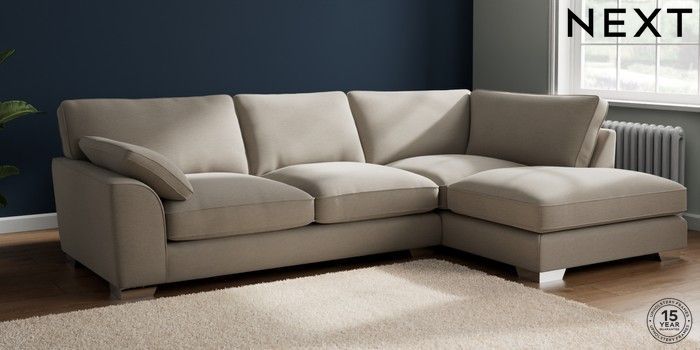 7.3.1 Buy Stamford Grand Relaxed Sit Large Corner Chaise - Right Hand Ripple Chenille Light Natural Large Square Angle - Chrome Metal from the Next UK online shop Click here to use our accessible website