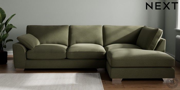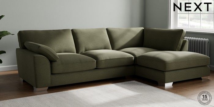 7.3.1 Buy Stamford Grand Relaxed Sit Large Corner Chaise - Right Hand Ripple Chenille Mid Moss Green Large Square Angle - Chrome Metal from the Next UK online shop Click here to use our accessible website