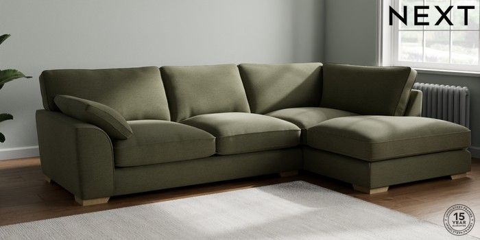 7.3.1 Buy Stamford Grand Relaxed Sit Large Corner Chaise - Right Hand Ripple Chenille Mid Moss Green Large Square Angle - Light from the Next UK online shop Click here to use our accessible website
