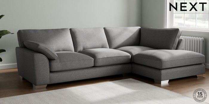 7.3.1 Buy Stamford Grand Relaxed Sit Large Corner Chaise - Right Hand Studio Chenille Mid Grey Large Square Angle - Chrome Metal from the Next UK online shop Click here to use our accessible website