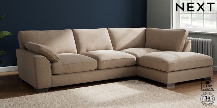 7.3.1 Buy Stamford Grand Relaxed Sit Large Corner Chaise - Right Hand Tweedy Blend Easy Clean Light Dove Natural Large Square Angle - Gunmetal from the Next UK online shop