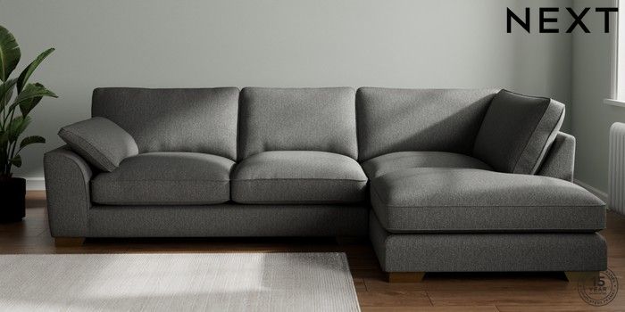 7.3.1 Buy Stamford Grand Relaxed Sit Large Corner Chaise - Right Hand Tweedy Chenille Dark Grey Large Square Angle - Brushed Brass from the Next UK online shop Click here to use our accessible website