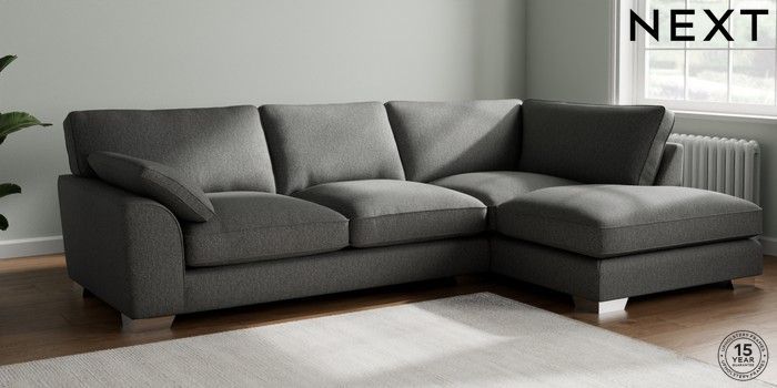 7.3.1 Buy Stamford Grand Relaxed Sit Large Corner Chaise - Right Hand Tweedy Chenille Dark Grey Large Square Angle - Chrome Metal from the Next UK online shop Click here to use our accessible website