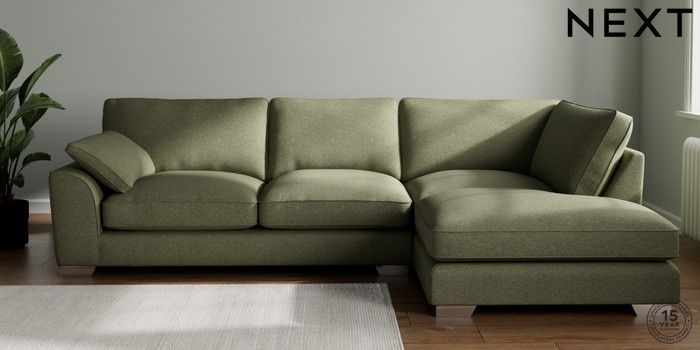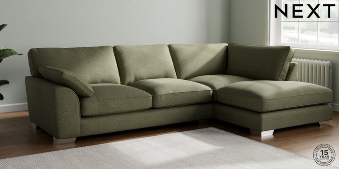 7.3.1 Buy Stamford Grand Relaxed Sit Large Corner Chaise - Right Hand Tweedy Chenille Mid Moss Green Large Square Angle - Chrome Metal from the Next UK online shop Click here to use our accessible website