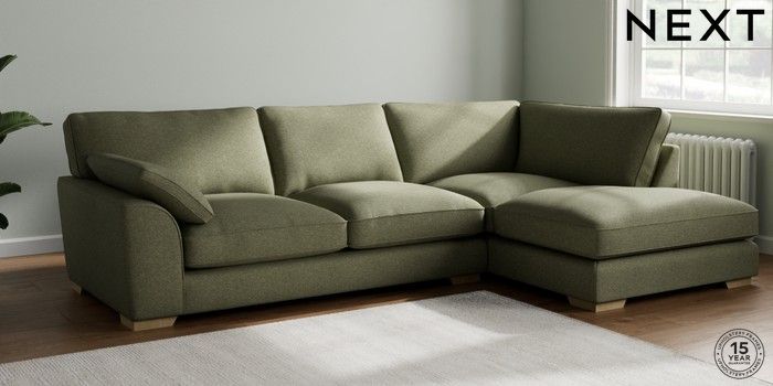7.3.1 Buy Stamford Grand Relaxed Sit Large Corner Chaise - Right Hand Tweedy Chenille Mid Moss Green Large Square Angle - Light from the Next UK online shop Click here to use our accessible website