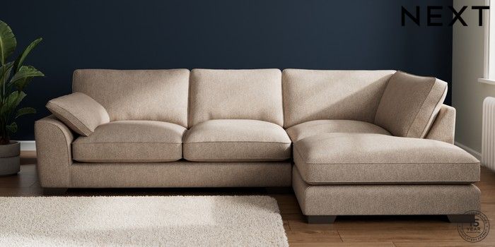 7.3.1 Buy Stamford Grand Relaxed Sit Large Corner Chaise - Right Hand Tweedy Chenille Mid Natural Large Square Angle - Gunmetal from the Next UK online shop Click here to use our accessible website