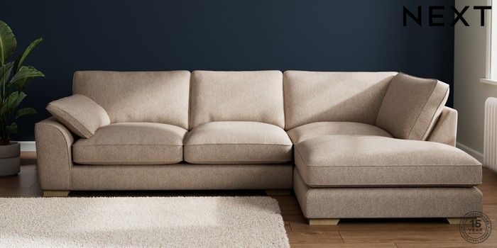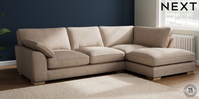 7.3.1 Buy Stamford Grand Relaxed Sit Large Corner Chaise - Right Hand Tweedy Chenille Mid Natural Large Square Angle - Light from the Next UK online shop Click here to use our accessible website