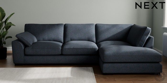 7.3.1 Buy Stamford Grand Relaxed Sit Large Corner Chaise - Right Hand Tweedy Chenille Navy Blue Large Square Angle - Dark from the Next UK online shop Click here to use our accessible website