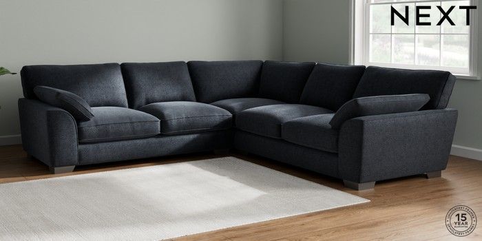 7.3.1 Buy Stamford Grand Relaxed Sit Large Corner Sofa - Universal Boucle Chenille Dark Slate Blue Large Square Angle - Gunmetal from the Next UK online shop Click here to use our accessible website