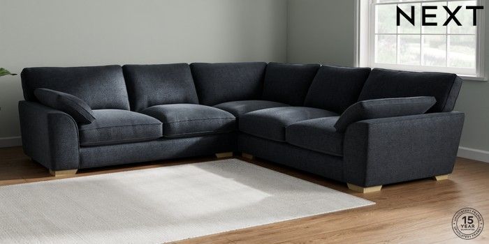 7.2.10 Buy Stamford Grand Relaxed Sit Large Corner Sofa - Universal Boucle Chenille Dark Slate Blue Large Square Angle - Light from the Next UK online shop Click here to use our accessible website