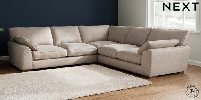 7.2.10 Buy Stamford Grand Relaxed Sit Large Corner Sofa - Universal Boucle Chenille Light Natural Large Square Angle - Mid from the Next UK online shop Click here to use our accessible website