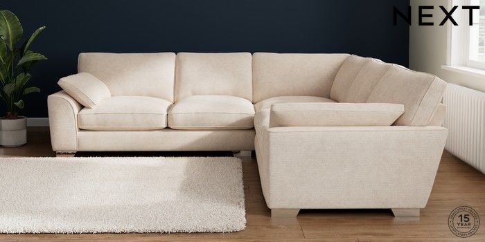 7.3.1 Buy Stamford Grand Relaxed Sit Large Corner Sofa - Universal Boucle Chenille Oyster Large Square Angle - Chrome Metal from the Next UK online shop Click here to use our accessible website