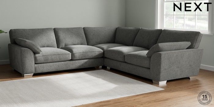 7.2.10 Buy Stamford Grand Relaxed Sit Large Corner Sofa - Universal Chunky Chenille Dark Grey Large Square Angle - Chrome Metal from the Next UK online shop Click here to use our accessible website