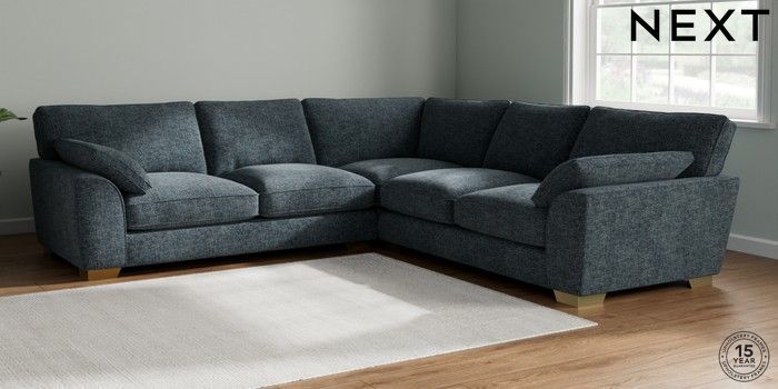 7.2.10 Buy Stamford Grand Relaxed Sit Large Corner Sofa - Universal Chunky Chenille Dark Navy Blue Large Square Angle - Brushed Brass from the Next UK online shop Click here to use our accessible website