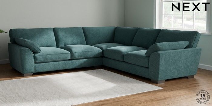 7.3.1 Buy Stamford Grand Relaxed Sit Large Corner Sofa - Universal Chunky Chenille Mid Teal Green Large Square Angle - Gunmetal from the Next UK online shop Click here to use our accessible website