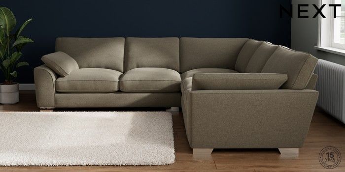 7.3.1 Buy Stamford Grand Relaxed Sit Large Corner Sofa - Universal Chunky Marl Light Olive Green Large Square Angle - Chrome Metal from the Next UK online shop Click here to use our accessible website