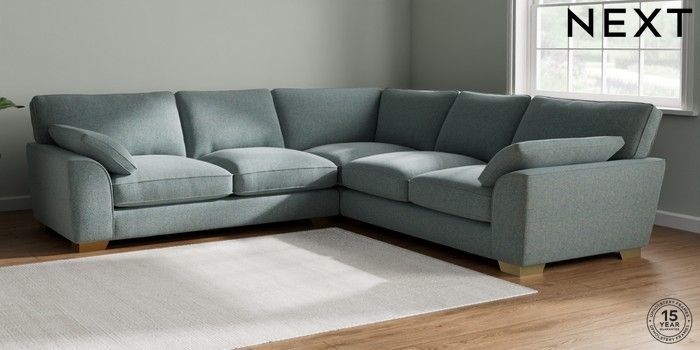 7.2.10 Buy Stamford Grand Relaxed Sit Large Corner Sofa - Universal Chunky Marl Mid Blue Large Square Angle - Brushed Brass from the Next UK online shop Click here to use our accessible website