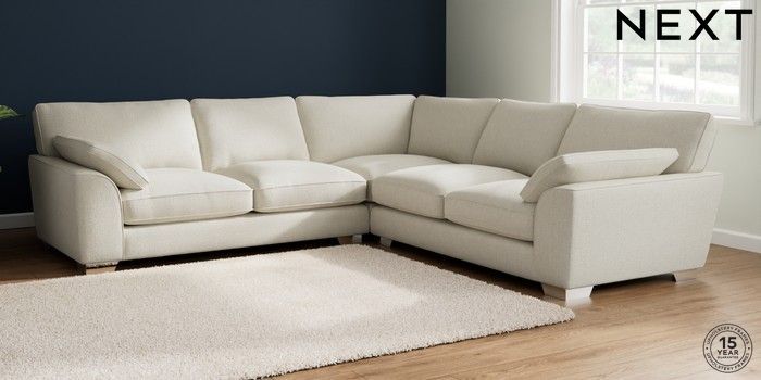 7.2.10 Buy Stamford Grand Relaxed Sit Large Corner Sofa - Universal Chunky Texture Oyster Large Square Angle - Chrome Metal from the Next UK online shop Click here to use our accessible website