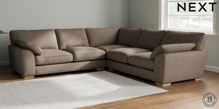 7.3.1 Buy Stamford Grand Relaxed Sit Large Corner Sofa - Universal Chunky Weave Dark Natural Large Square Angle - Light from the Next UK online shop Click here to use our accessible website