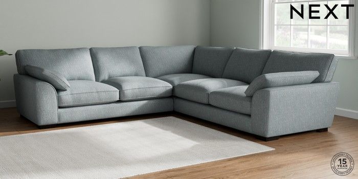 7.2.10 Buy Stamford Grand Relaxed Sit Large Corner Sofa - Universal Chunky Weave Mid Blue Large Square Angle - Dark from the Next UK online shop Click here to use our accessible website