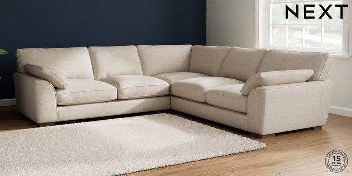 7.2.10 Buy Stamford Grand Relaxed Sit Large Corner Sofa - Universal Chunky Weave Mid Natural Large Square Angle - Mid from the Next UK online shop Click here to use our accessible website