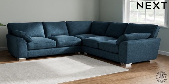 7.3.1 Buy Stamford Grand Relaxed Sit Large Corner Sofa - Universal Cotswold Chenille Dark Blue Large Square Angle - Chrome Metal from the Next UK online shop Click here to use our accessible website