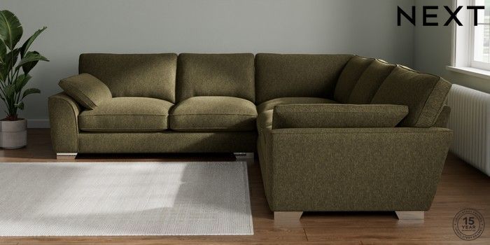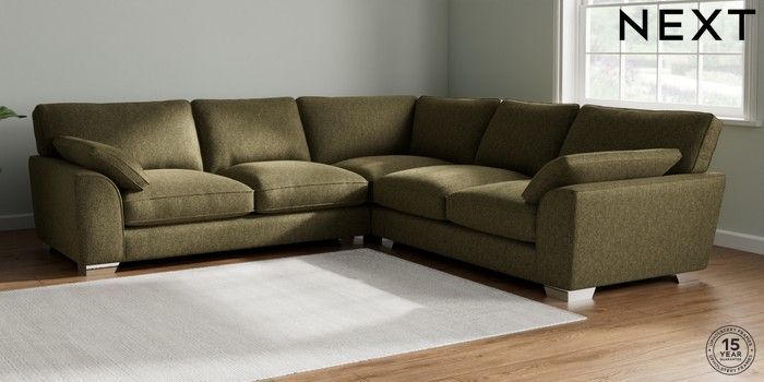 7.3.1 Buy Stamford Grand Relaxed Sit Large Corner Sofa - Universal Cotswold Chenille Dark Green Large Square Angle - Chrome Metal from the Next UK online shop Click here to use our accessible website