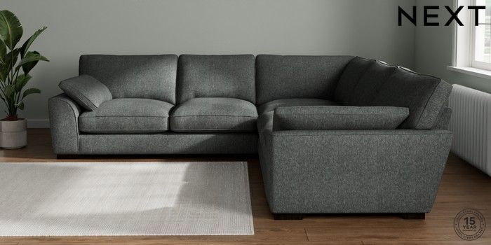 7.3.1 Buy Stamford Grand Relaxed Sit Large Corner Sofa - Universal Cotswold Chenille Dark Grey Large Square Angle - Dark from the Next UK online shop