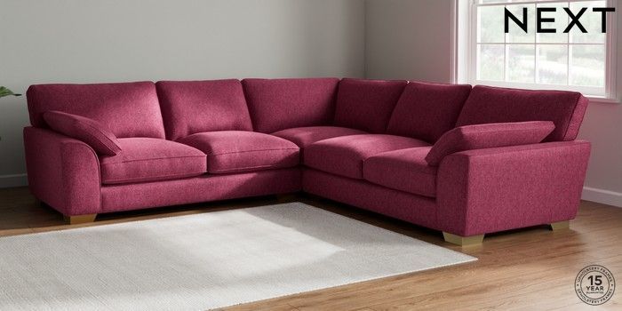 7.2.10 Buy Stamford Grand Relaxed Sit Large Corner Sofa - Universal Cotswold Chenille Dark Raspberry Pink Large Square Angle - Brushed Brass from the Next UK online shop Click here to use our accessible website