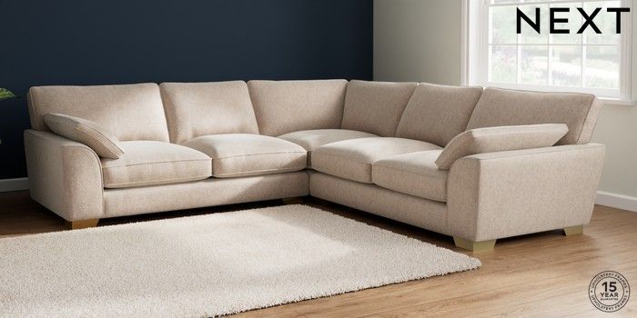 7.2.10 Buy Stamford Grand Relaxed Sit Large Corner Sofa - Universal Cotswold Chenille Light Natural Large Square Angle - Brushed Brass from the Next UK online shop Click here to use our accessible website