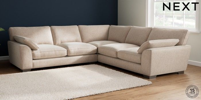 7.3.1 Buy Stamford Grand Relaxed Sit Large Corner Sofa - Universal Cotswold Chenille Light Natural Large Square Angle - Gunmetal from the Next UK online shop Click here to use our accessible website