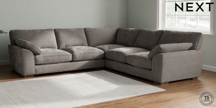 7.3.1 Buy Stamford Grand Relaxed Sit Large Corner Sofa - Universal Distressed Velour French Grey Large Square Angle - Mid from the Next UK online shop Click here to use our accessible website