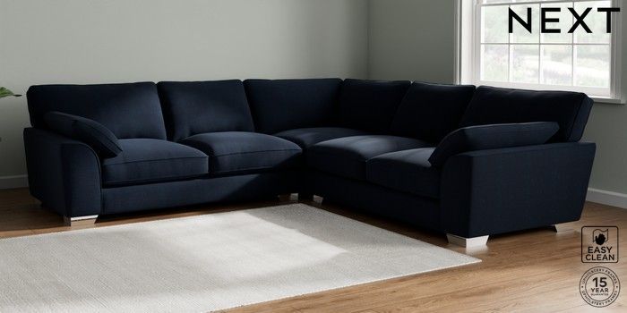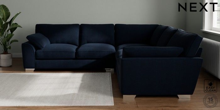 7.3.1 Buy Stamford Grand Relaxed Sit Large Corner Sofa - Universal Fine Chenille Easy Clean Dark Navy Blue Large Square Angle - Chrome Metal from the Next UK online shop Click here to use our accessible website
