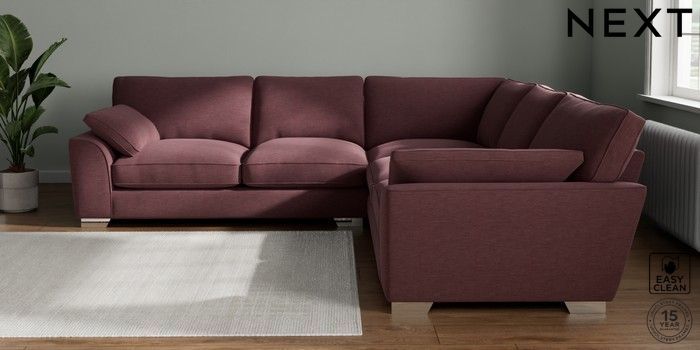 7.3.1 Buy Stamford Grand Relaxed Sit Large Corner Sofa - Universal Fine Chenille Easy Clean Mid Mulberry Purple Large Square Angle - Chrome Metal from the Next UK online shop Click here to use our accessible website