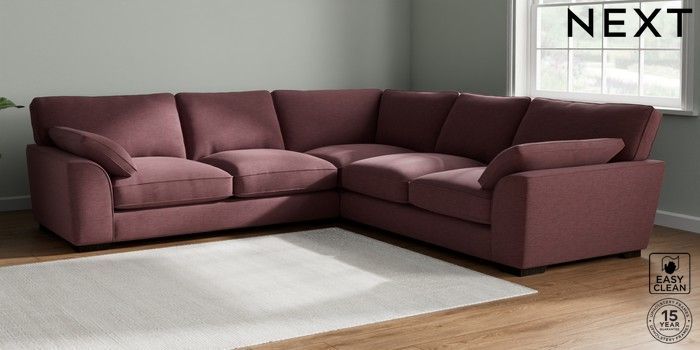 7.3.1 Buy Stamford Grand Relaxed Sit Large Corner Sofa - Universal Fine Chenille Easy Clean Mid Mulberry Purple Large Square Angle - Dark from the Next UK online shop Click here to use our accessible website