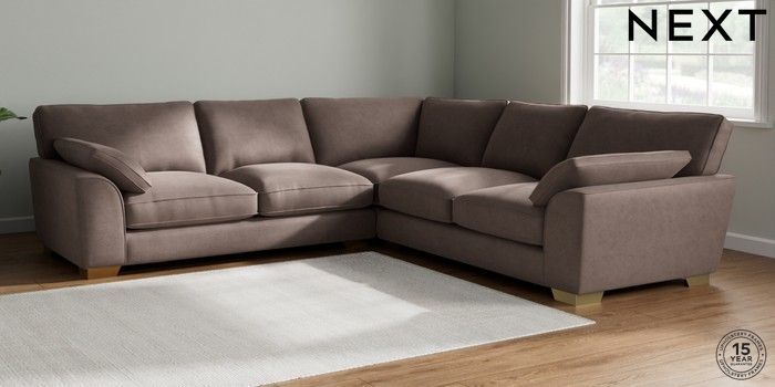 7.2.10 Buy Stamford Grand Relaxed Sit Large Corner Sofa - Universal Luxe Chenille Mink Brown Large Square Angle - Brushed Brass from the Next UK online shop Click here to use our accessible website